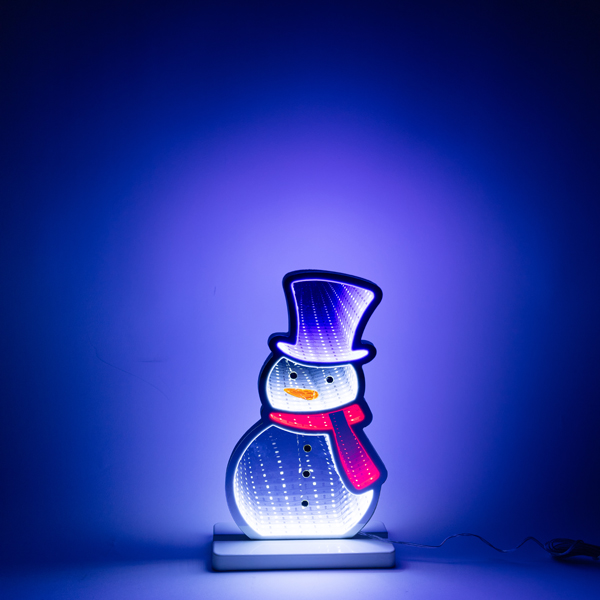 Ένας διακοσμητικός καθρέφτης σε σχέδιο χιονανθρώπου, με φωτεινή ταινία LED που ακολουθεί το περίγραμμα της φιγούρας. Τα 87 πολύχρωμα LED απλώνονται σε φωτοσωλήνα μήκους 1,45 μέτρων, δημιουργώντας μια απαλή, ζωντανή χρωματική λάμψη γύρω από το σχέδιο. Κατασκευασμένος από PVC και χαλκό, λειτουργεί με μετασχηματιστή 4,5V και διαθέτει προέκταση παροχής 3 μέτρων, ώστε να τοποθετείται εύκολα όπου χρειάζεται. Ένα διακοσμητικό κομμάτι που ταιριάζει σε χριστουγεννιάτικη διακόσμηση σπιτιού ή βιτρίνας, με απλή λειτουργία και σταθερή φωτεινή ταινία χωρίς προγράμματα.