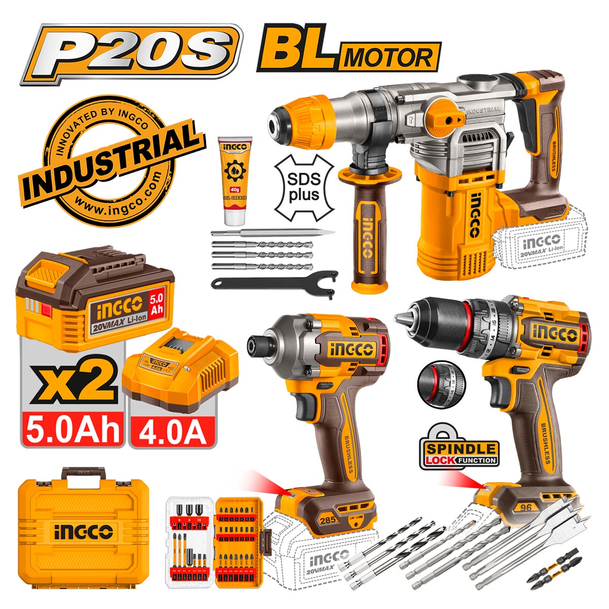 Τάση: 20V Led λάμπα εργασίας: Ναι Led ένδειξη κατάστασης μπαταρίας: Ναι Λεπτομέρειες προϊόντος: 1. Κρουστικό Δραπανοκατσάβιδο Compact Μπαταρίας (CIDLI209681): Ταχύτητα 0-550/0-2000rpm Κρούσεις 0-30.000bpm Ροπή 96 Nm Ρυθμίσεις ροπής 22+1 Αυτόματο μεταλλικό τσοκ έως 13mm Λειτουργία κλειδώματος άξονα Brushless Motor (μοτέρ χωρίς καρβουνάκια) Βάρος: 1.15 kg 2. Κατσαβίδι Παλμικό Μπαταρίας (CIRLI20281): Ταχύτητα 0-1600/0-1900/0-2600rpm Κρούσεις 0-2100/0-2500/0-2900ipm Ροπή 285 Nm Υποδοχή 1/4" Brushless Motor (μοτέρ χωρίς καρβουνάκια) Βάρος: 1.25 kg 3. Πιστολέτο Περιστροφικό Κρουστικό Σκαπτικό Μπαταρίας (CRHLI20288) Ταχύτητα χωρίς φορτίο 0-930rpm Κρούσεις 0-4400bpm Κρουστική ισχύς 4.5J Τσοκ SDS plus Αντικραδασμική πίσω λαβή Δυνατότητες τρυπήματος: Μπετόν 28mm, Ατσάλι 13mm, Ξύλο 40mm Brushless Motor (μοτέρ χωρίς καρβουνάκια) Bάρος: 3.80 kg Περιεχόμενα συσκευασίας: 1 τεμ. Φορτιστή 4A (FCLI20411E) 2 τεμ. Μπαταρίες 20V 5.0Ah Li-Ion (FBLI2003) 3 τεμ. Τρυπάνια φτερού ξύλου: 16, 19, 22mm 3 τεμ. Τρυπάνια τοίχου-μπετού: 5, 6, 8mm 3 τεμ. Τρυπάνια μετάλλου HSS: 4, 5, 6mm 2 τεμ. Διπλές μύτες impact 65mm: PH2+PH2,PH2+SL6 1 τεμ. Βελόνι, 3 τεμ. Τρυπάνια 8-10-12mm, 1 τεμ. Κλειδί, 1 τεμ. Σωληνάριο γράσσου, Πλαϊνή χειρολαβή Σετ 31 τεμ. Μύτες Impact (AKDL11306): 14 τεμ. Μύτες 25mm: PH1, PH2, PH3, PZ1, PZ2, PZ3, SL3, SL4, SL5, SL6, T20, T25, Τ27, T30. 10 τεμ. Μύτες 50mm PH1, PH2, PH2, PH3, PZ1, PZ2, PZ2, PZ3, SL5, SL6. 3 τεμ. Μαγνητικά καρυδάκια 48mm: 6, 8, 10mm 3 τεμ. Μύτες 89mm: PH2, PZ2, SL6 1 τεμ. Μαγνητική προέκταση Πλαστική διπλή κασετίνα Πλαστική βαλίτσα INDUSTRIAL (Επαγγελματικός - Βιομηχανικός): Ναι
