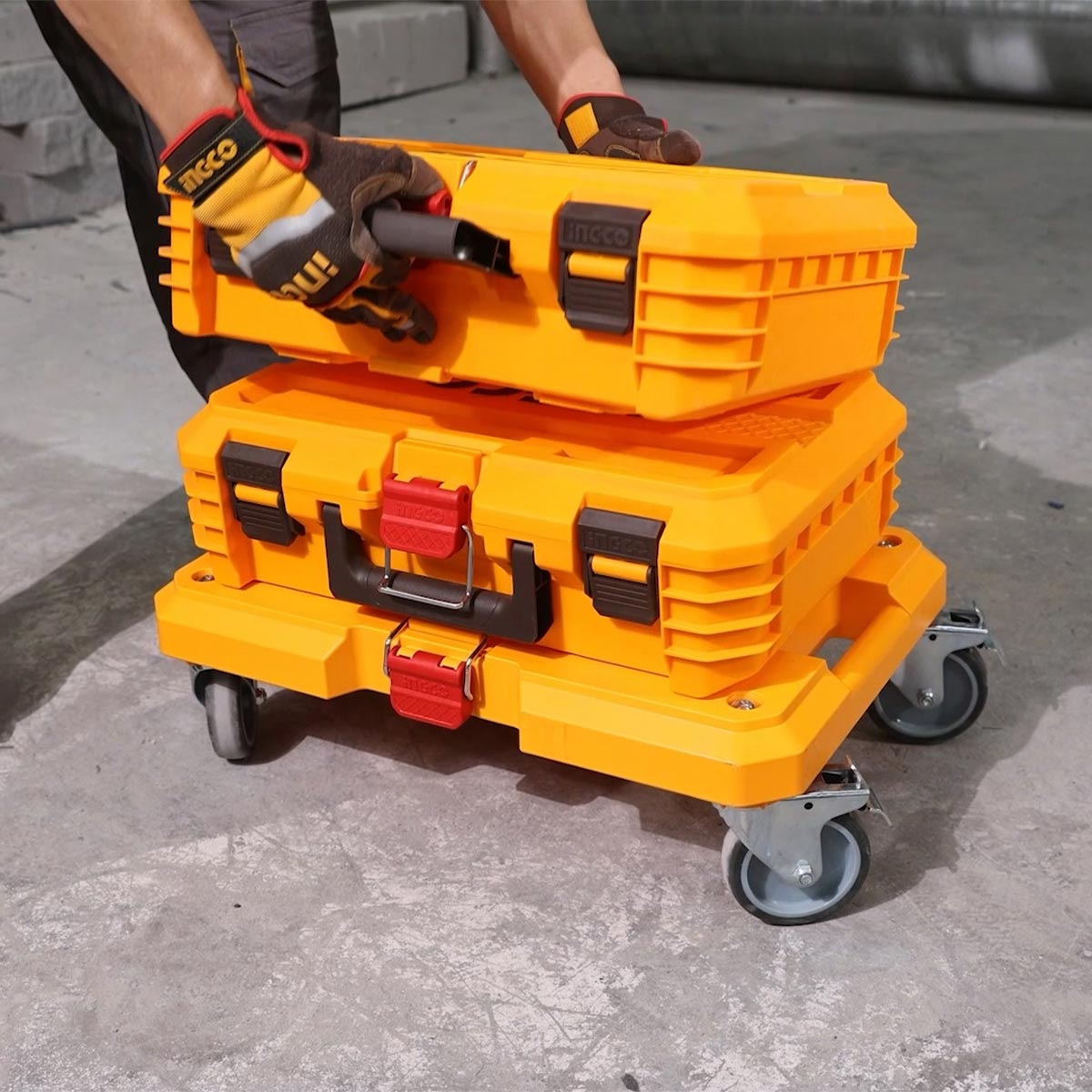 Διαστάσεις: 48 x 32 x 15cm Λεπτομέρειες προϊόντος: Μπορούν να κουμπώνουν πολλές μεταξύ τους. Υλικό στιβαρότατη κατασκευή από PP πλαστικό. Πλαστικά κουμπώματα και λαβή. Ιδανική για την αποθήκευση και μεταφορά εργαλείων και αξεσουάρ. Συνδυάστε με την Εργαλειοθήκη Βάση με Ρόδες HHWB61001 INGCO. Μέγιστο φορτίο 15kg SUPER INGCO: Ναι