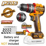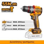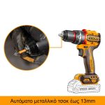 Τάση: 20V Ταχύτητα χωρίς φορτίο: 0-550/0-2000rpm Κρούσεις: 0-30000bpm Ροπή: 55 Nm Ρυθμίσεις ροπής: 22+1+1 Υποδοχή - Άξονας: Αυτόματο μεταλλικό τσοκ έως 13mm Led λάμπα εργασίας: Ναι Λεπτομέρειες προϊόντος: SOLO (χωρίς μπαταρία και φορτιστή) Λειτουργία κλειδώματος άξονα Brushless Motor (μοτέρ χωρίς καρβουνάκια) Περιεχόμενα συσκευασίας: 3 τεμ. Τρυπάνια 1 τεμ. Διπλή μύτη 65mm Cr-V INDUSTRIAL (Επαγγελματικός - Βιομηχανικός): Ναι