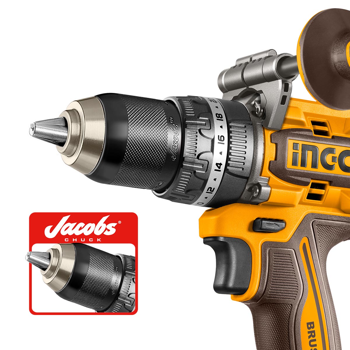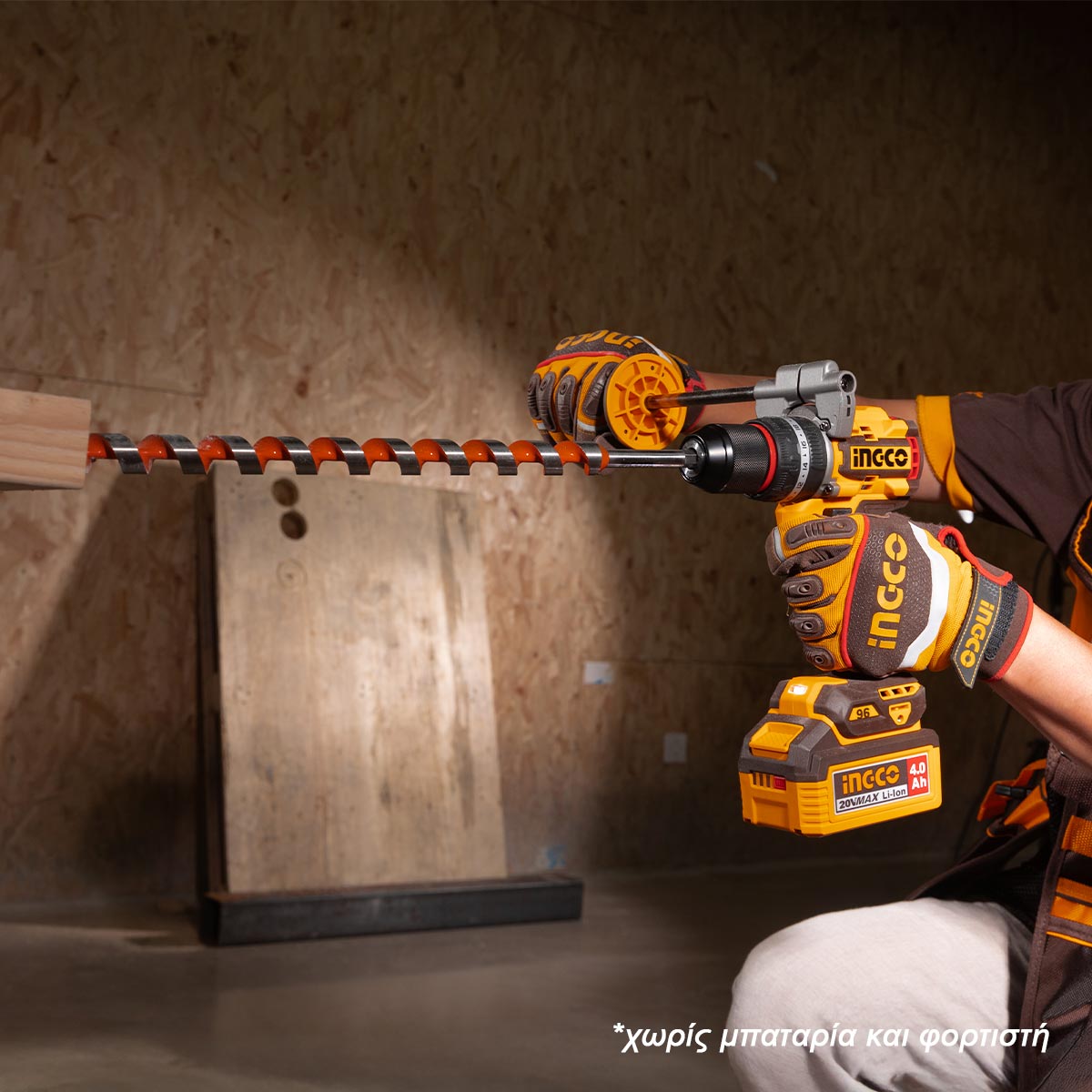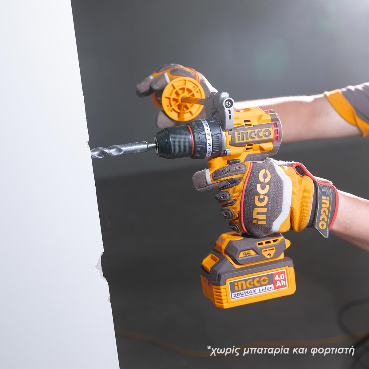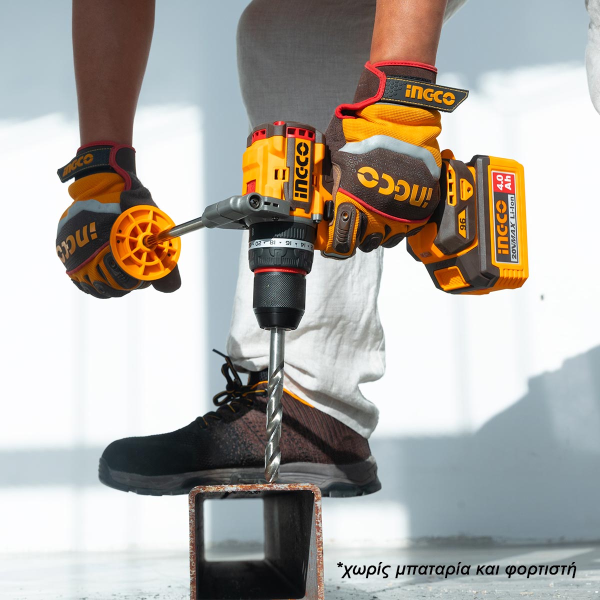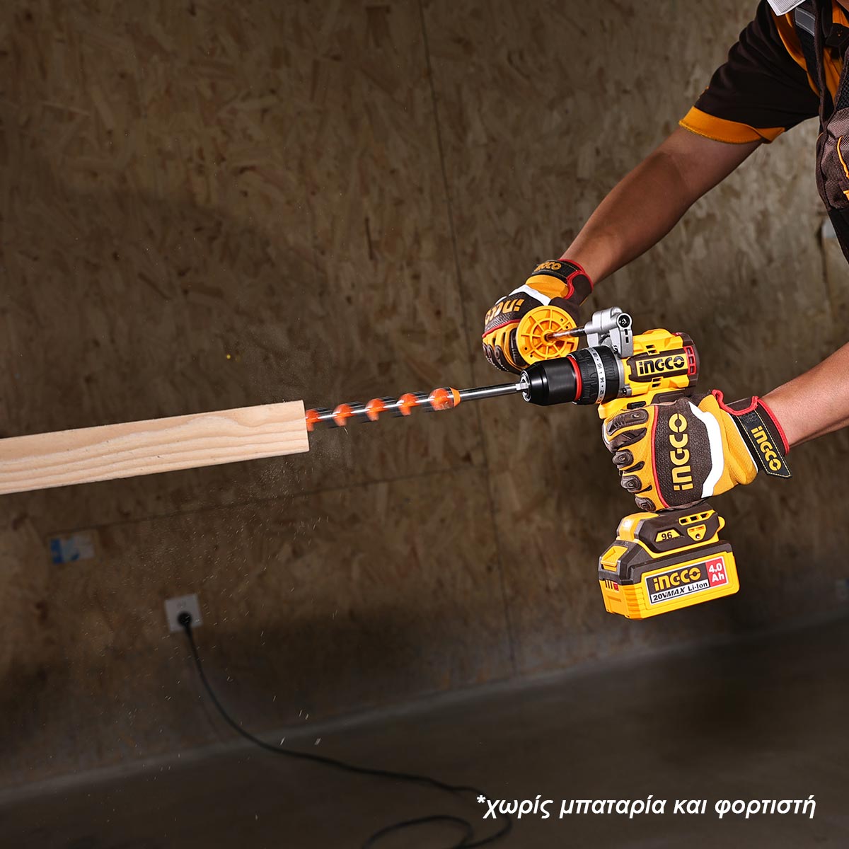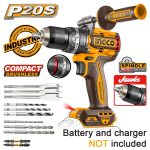 Τάση: 20V Ταχύτητα χωρίς φορτίο: 0-500/0-2.000rpm Ισχύς: 1100W Κρούσεις: 0-30.000bpm Ροπή: 96Nm Ρυθμίσεις ροπής: 22+1+1 Υποδοχή - Άξονας: Jacobs αυτόματο μεταλλικό τσοκ έως 13mm Led λάμπα εργασίας: Ναι Λειτουργία κλειδώματος άξονα. Brushless Motor (μοτέρ χωρίς καρβουνάκια) Δυνατότητες τρυπήματος: Μπετόν 13mm, Ατσάλι 13mm, Ξύλο 55mm. Περιεχόμενα συσκευασίας: 3 τεμ. Τρυπάνια φτερού ξύλου: 16, 19, 22mm 3 τεμ. Τρυπάνια τοίχου-μπετού: 5, 6, 8mm 3 τεμ. Τρυπάνια μετάλλου HSS: 4, 5, 6mm 2 τεμ. Διπλές μύτες impact 65mm: PH2+PH2,PH2+SL6 1 τεμ. Πλαϊνή χειρολαβή INDUSTRIAL (Επαγγελματικός - Βιομηχανικός): Ναι
