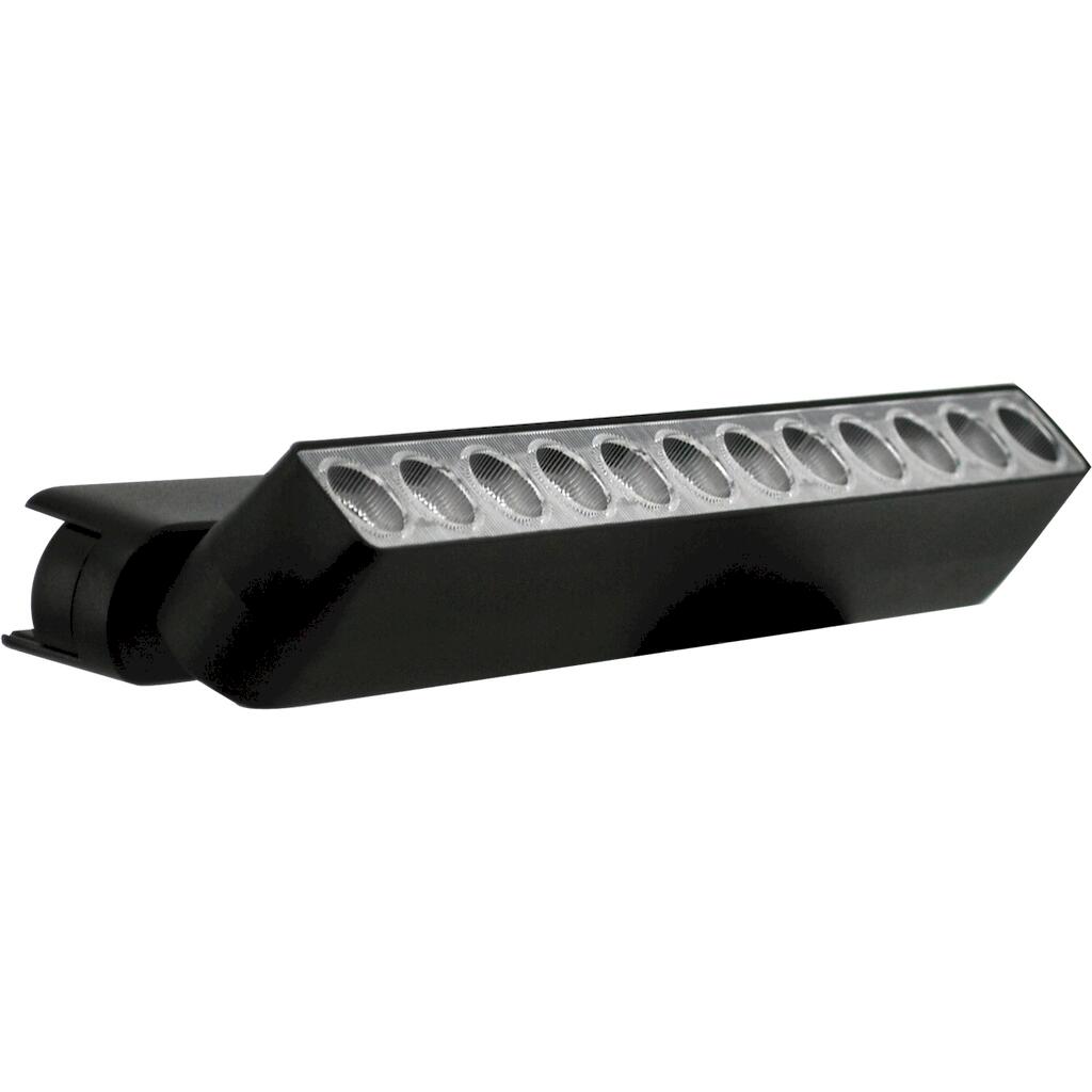 Μαγνητικό φωτιστικό για ράγα σε μαύρο χρώμα, με διαστάσεις 23 cm μήκος, 2,6 cm πλάτος και 6 cm ύψος. Διαθέτει ενσωματωμένο LED 12W και χρώμα φωτισμού λευκό ημέρας 4000K.