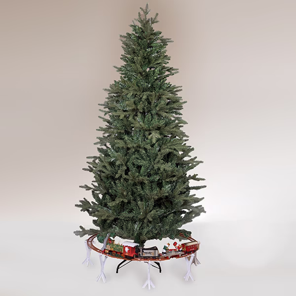 Ένα χριστουγεννιάτικο τρενάκι με ράγες και διάμετρο 89 cm. Λειτουργεί με μπαταρίες AA, κινείται πάνω στις ράγες και διαθέτει μουσική και εφέ καπνού. Με ύψος περίπου 32 cm και πλαστική κατασκευή, είναι ελαφρύ και κατάλληλο για χρήση σε εσωτερικό χώρο.