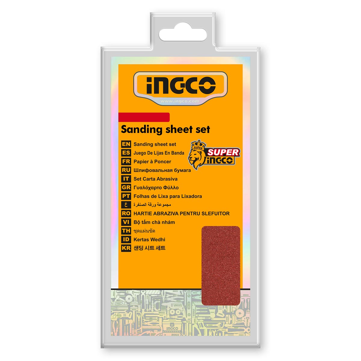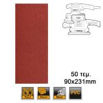 Μέγεθος: 90 x 231mm Λεπτομέρειες προϊόντος: Κατάλληλα για λείανση ξύλου, πλαστικών, μετάλλων. Εξάρτημα για το Παλμικό Τριβείο Μπαταρίας CFSLI2031 και για το Ηλεκτρικό Παλμικό Τριβείο FS3216. Περιεχόμενα συσκευασίας: 50 τεμ. Φύλλα λείανσης: 10 τεμ. 40 κόκκωση 15 τεμ. 80 κόκκωση 15 τεμ. 120 κόκκωση 10 τεμ. 180 κόκκωση SUPER INGCO: Ναι
