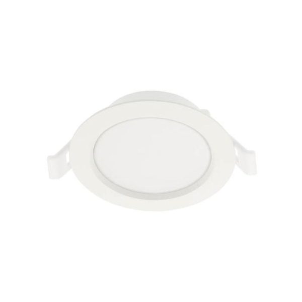 CCT (KELVIN): 3000K (WARM WHITE) POWER (W) :6.0 LUMINUS EFFICIENCY: 90 LIGHT BEAM ANGLE :120° CRI: 80 POWER FACTOR :0.5 IP PROTECTION CLASS: IP20 SWITCH ON/OFF: 30000 LIFETIME (H):50000 OPERATION VOLTAGE (V): 180-240V AC-50/60 Hz ENERGY SAVING (%) :86% ELECTRICAL EFFICIENCY INDEX (EEI): E ELECTRICAL PROTECTION: Class II BODY MATERIAL :Glass & Aluminum DIFFUSER MATERIAL: Glass BODY COLOR: WHITE DIMENSIONS (mm): Ø98x40mm TEMPERATURE (Ta) : -10°CTa50°C CUT SIZE DIMENSIONS (mm): Ø75 LUMINUS FLUX (Lm): 540