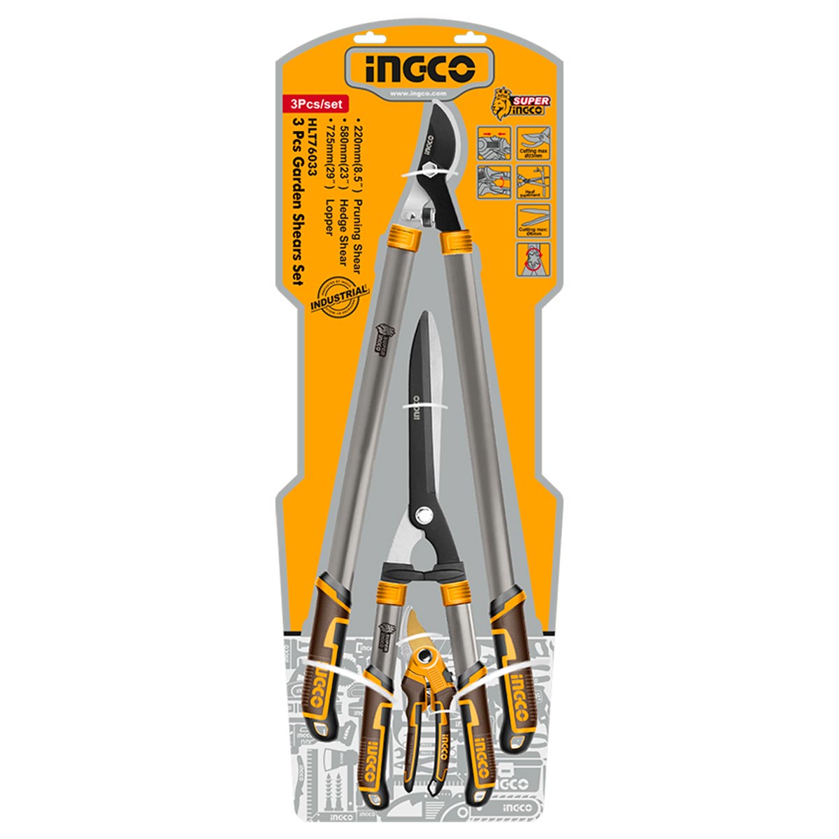 Υλικό: Ατσάλι Λαβή: Εργονομικές λαβές Περιεχόμενα συσκευασίας: 1 τεμ. Ψαλίδι Κλαδέματος 8.5" / 220mm 1 τεμ. Ψαλίδι Θάμνων - Χλόης 22" / 557mm 1 τεμ. Ψαλίδι Κλαδέματος 29” / 725mm INDUSTRIAL (Επαγγελματικός - Βιομηχανικός): Ναι