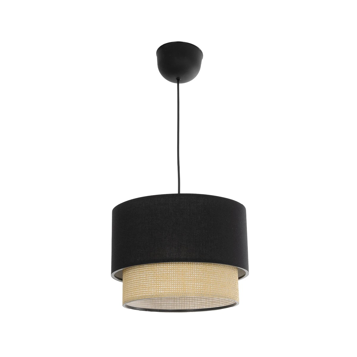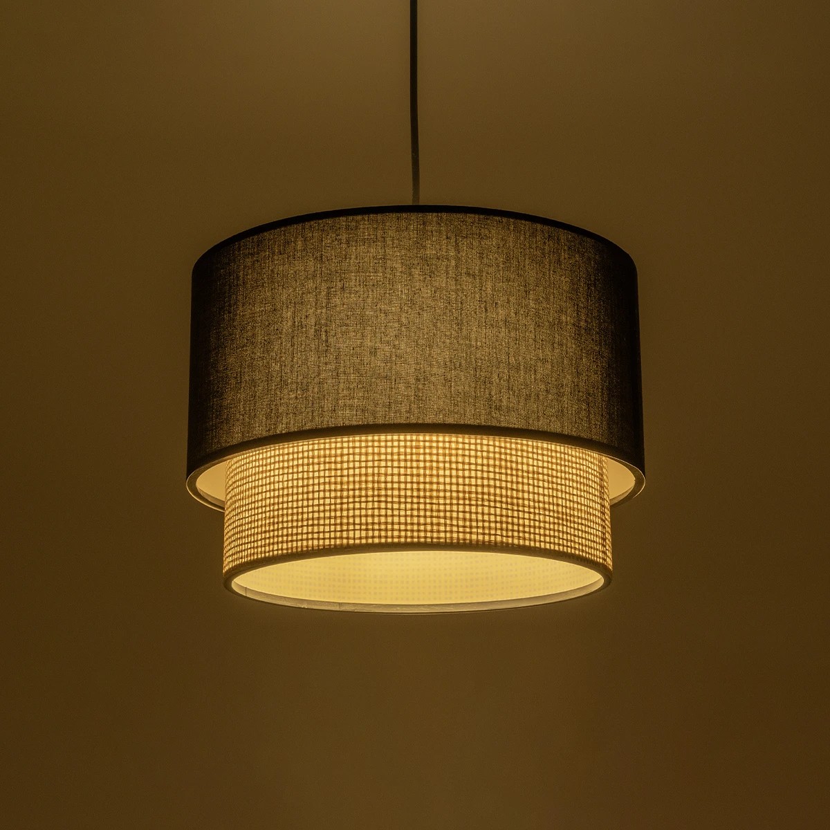Κρεμαστό φωτιστικό οροφής της σειράς BIGGIE σε μαύρο και μπεζ χρώμα, με υφασμάτινο καπέλο και υποδοχή για έναν λαμπτήρα E27. Ο κομψός σχεδιασμός του το καθιστά ιδανικό για σαλόνι, τραπεζαρία, υπνοδωμάτιο, αλλά και για επαγγελματικούς χώρους.