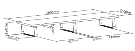 Χαρακτηριστικά -θέσεις: 2 -μέγεθος οθόνης: 13"~32" -φορτίο: έως 20kg (ανά οθόνη) -εμβέλεια ύψους: 124mm -πάχος επιφάνειας: 16mm -υλικό: πόδια: ατσάλι, επιφάνεια: μοριοσανίδα -διαστάσεις: 1000 x 260 x 124mm -χρώμα: μαύρη