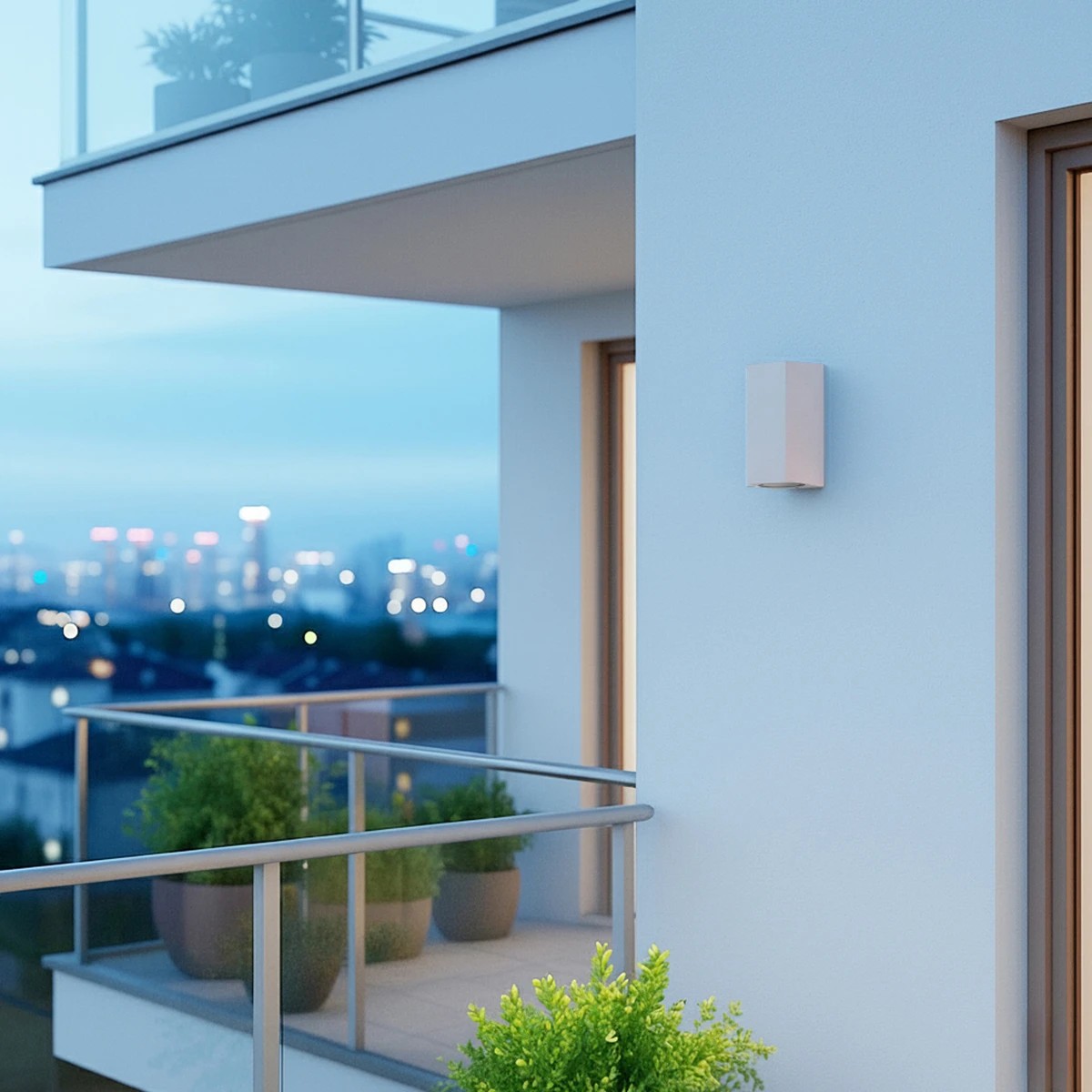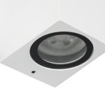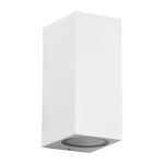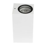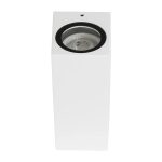 Φωτιστικό τοίχου – απλίκα εξωτερικού χώρου δίφωτο BURANO σε απόχρωση λευκή, από αλουμίνιο σε σχήμα ορθογώνιο. Διαθέτει 2 υποδοχές για λαμπτήρα τύπου GU10. Έχει δείκτη προστασίας IP65, καθιστώντας το ανθεκτικό σε σκόνη και νερό, ιδανικό για εξωτερικές τοποθεσίες.