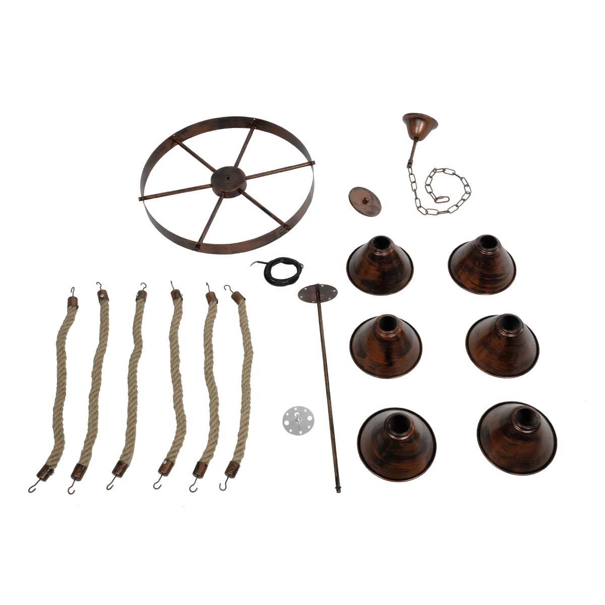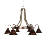 Κρεμαστό φωτιστικό πολύφωτο CAMELOT σε απόχρωση χάλκινη με μπεζ. Κατασκευασμένο από μέταλλο και σχοινί με καπέλο διαμέτρου 92 εκατοστών. Διαθέτει έξι υποδοχές για λαμπτήρες τύπου E27. Κατάλληλο να τοποθετηθεί σε υπνοδωμάτιο , σαλόνι , κουζίνα, τραπεζαρία και σε οποιοδήποτε άλλο οικιακό και επαγγελματικό χώρο.