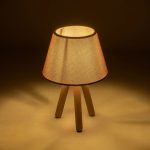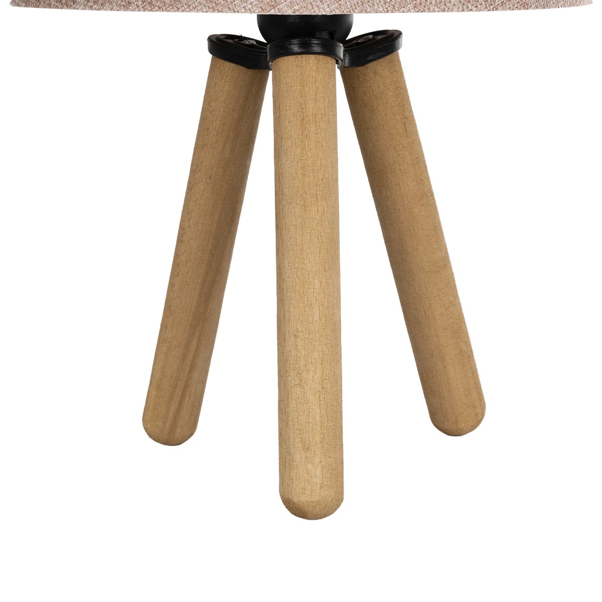 CAP Eπιτραπέζιο Φωτιστικό Πορτατίφ Μονόφωτο E27 Καφέ Ξύλο με Ροζ Ύφασμα Μ22 x Π22 x Υ33cm