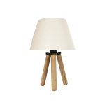 CAP Eπιτραπέζιο Φωτιστικό Πορτατίφ Μονόφωτο E27 Καφέ Ξύλο με Λευκό Ύφασμα Μ22 x Π22 x Υ33cm