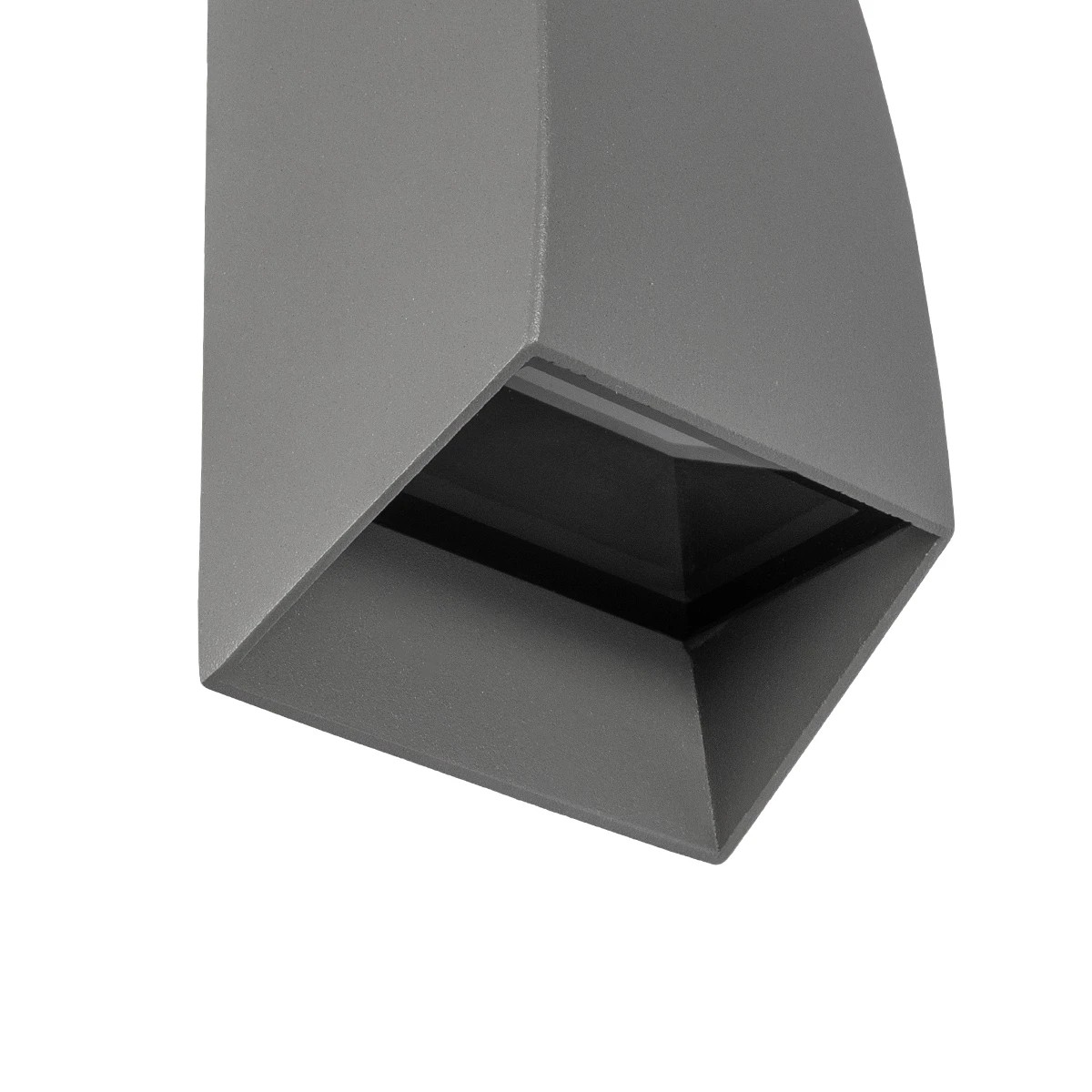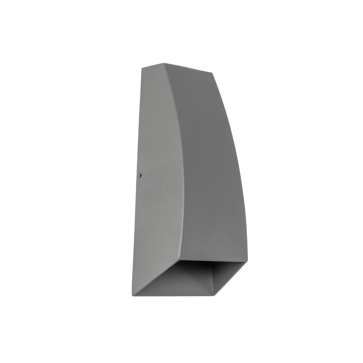 Φωτιστικό τοίχου – απλίκα της σειράς FLUX σε απόχρωση γκρι, από αλουμίνιο με ενσωματωμένο Led 6 Watt και χρώμα φωτισμού θερμό λευκό (2700K). Έχει δείκτη προστασίας IP65, καθιστώντας το ανθεκτικό σε σκόνη και νερό, ιδανικό για εξωτερικές τοποθεσίες.
