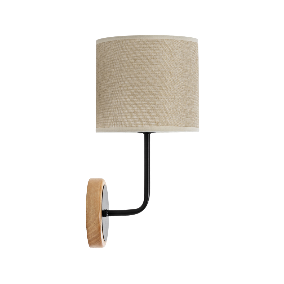 Το φωτιστικό τοίχου της σειράς MANU αποτελείται από μαύρο με ξύλινες λεπτομέρειες σώμα και μπεζ πλεκτό καπέλο. Διαθέτει υποδοχή για έναν λαμπτήρα τύπου Ε27.Ιδανικό για τοποθέτηση σε χώρους σαλονιού και σε οποιοδήποτε οικιακό και επαγγελματικό χώρο.