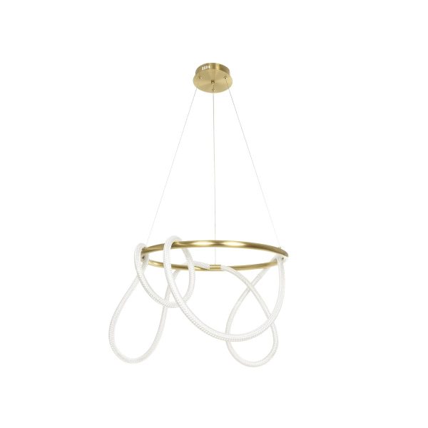 Το κρεμαστό φωτιστικό της σειράς GLOW ξεχωρίζει με τον μοντέρνο σχεδιασμό του σε χρυσό και λευκό χρώμα. Είναι κατασκευασμένο από αλουμίνιο και σχοινί, διαθέτει ενσωματωμένο LED 36W με φωτεινή ροή 3600lm και ρυθμιζόμενο λευκό φως (CCT). Με χειριστήριο για εναλλαγή χρωμάτων και ρύθμιση έντασης, προσφέρει άνεση και ευελιξία στον φωτισμό. Έχει γωνία δέσμης 360°, διάρκεια ζωής πάνω από 30.000 ώρες και ταιριάζει ιδανικά σε κάθε σύγχρονο εσωτερικό χώρο.