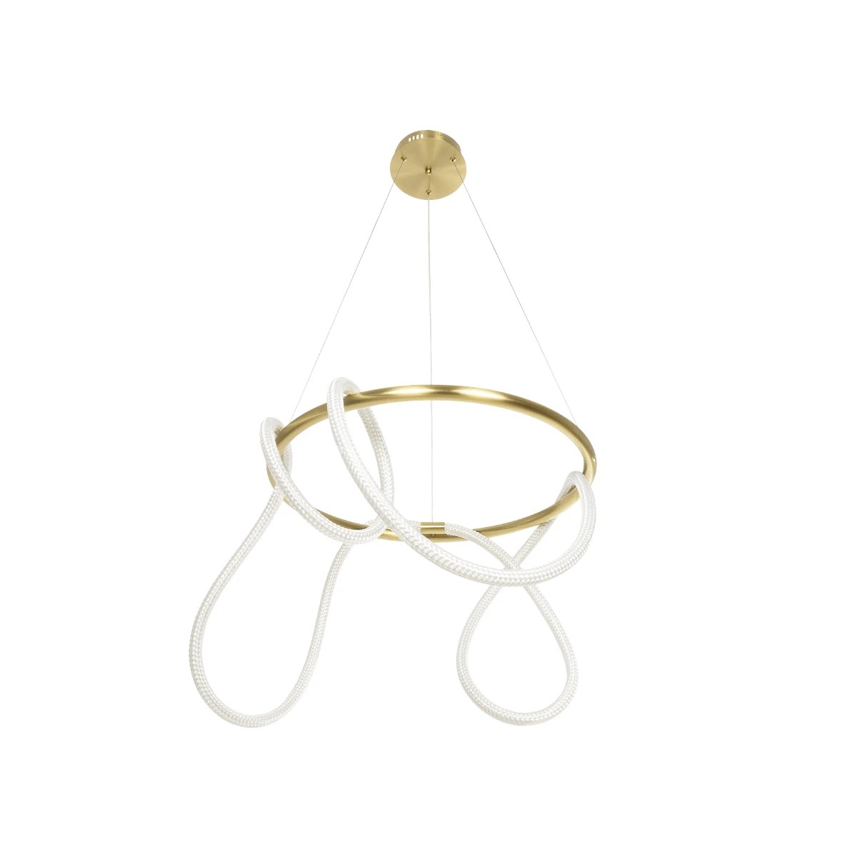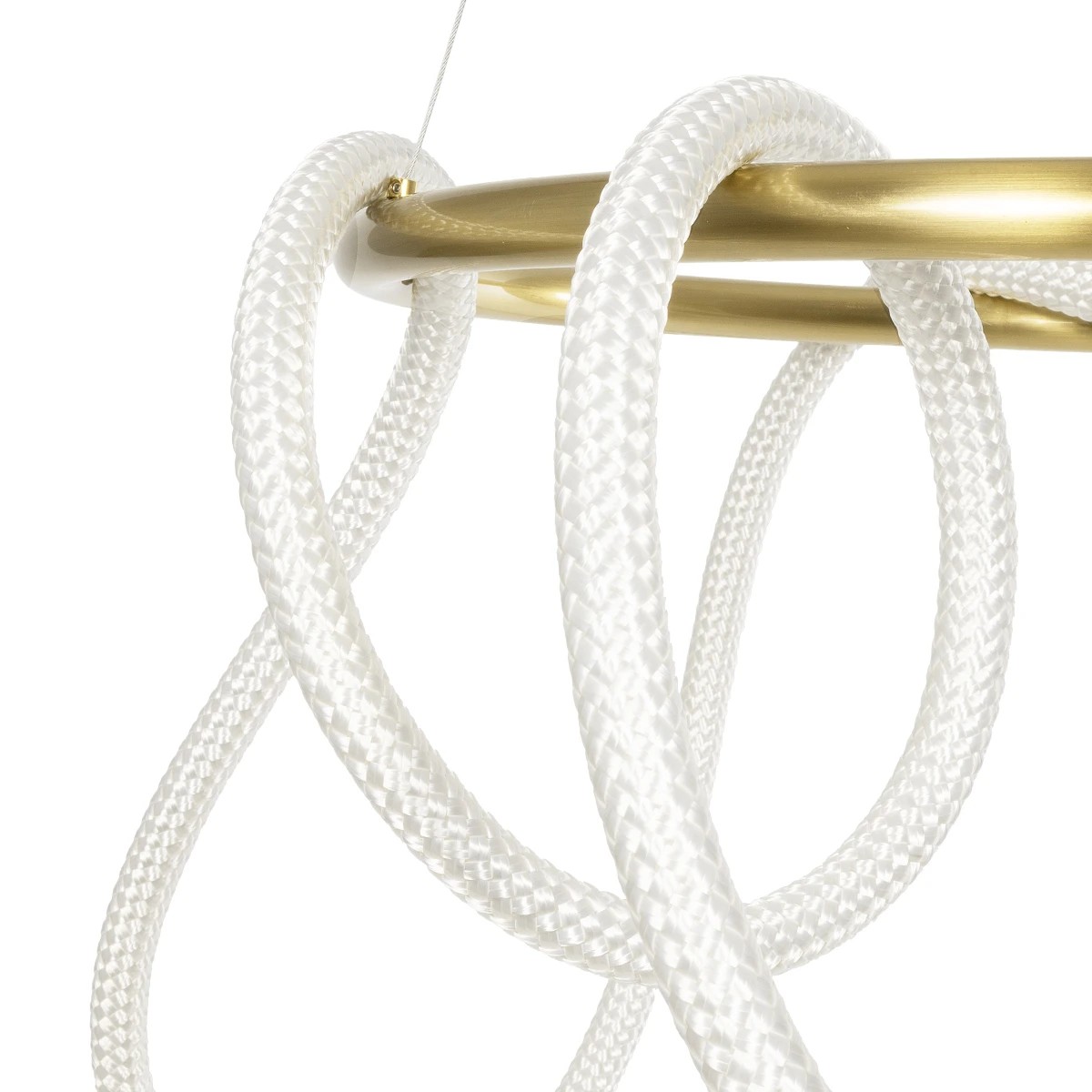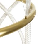 Το κρεμαστό φωτιστικό της σειράς GLOW ξεχωρίζει με τον μοντέρνο σχεδιασμό του σε χρυσό και λευκό χρώμα. Είναι κατασκευασμένο από αλουμίνιο και σχοινί, διαθέτει ενσωματωμένο LED 58W με φωτεινή ροή 5800lm και ρυθμιζόμενο λευκό φως (CCT). Με χειριστήριο για εναλλαγή χρωμάτων και ρύθμιση έντασης, προσφέρει άνεση και ευελιξία στον φωτισμό. Έχει γωνία δέσμης 360°, διάρκεια ζωής πάνω από 30.000 ώρες και ταιριάζει ιδανικά σε κάθε σύγχρονο εσωτερικό χώρο.
