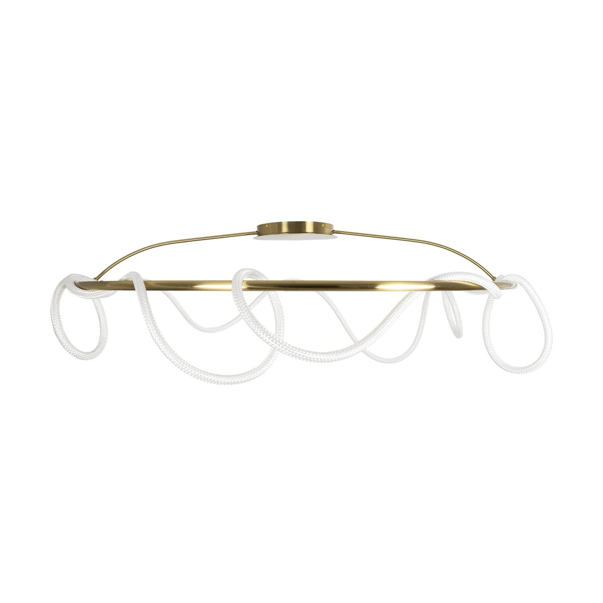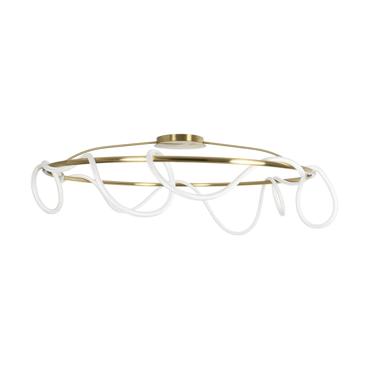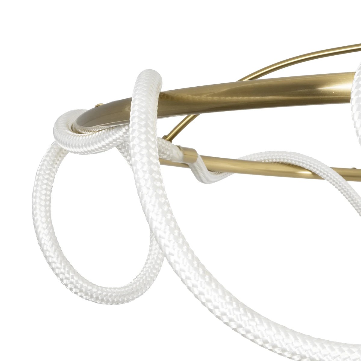 Το φωτιστικό οροφής της σειράς GLOW ξεχωρίζει με τον μοντέρνο σχεδιασμό του σε χρυσό και λευκό χρώμα. Είναι κατασκευασμένο από αλουμίνιο και σχοινί, διαθέτει ενσωματωμένο LED 89W με φωτεινή ροή 8900lm και ρυθμιζόμενο λευκό φως (CCT). Με χειριστήριο για εναλλαγή χρωμάτων και ρύθμιση έντασης, προσφέρει άνεση και ευελιξία στον φωτισμό. Έχει γωνία δέσμης 360°, διάρκεια ζωής πάνω από 30.000 ώρες και ταιριάζει ιδανικά σε κάθε σύγχρονο εσωτερικό χώρο.