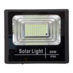 Ο Αυτόνομος Ηλιακός Φωτοβολταϊκός Προβολέας LED με βαθμό στεγανότητας IP66 είναι κατάλληλος για εξωτερικούς χώρους. Διαθέτει ενσωματωμένο led 60Watt με χρώμα φωτισμού ψυχρό λευκό(6000Κ). Περιέχει ένα πολυκρυσταλλικό φωτοβολταϊκό πάνελ για την φόρτιση των μπαταριών του και καλώδιο σύνδεσης 4,40 μέτρων. Περιλαμβάνει ασύρματο χειριστήριο για την αυτόματη ρύθμιση λειτουργίας του προβολέα. Επίσης περιλαμβάνει αισθητήρα Ημέρας – Νύχτας.
