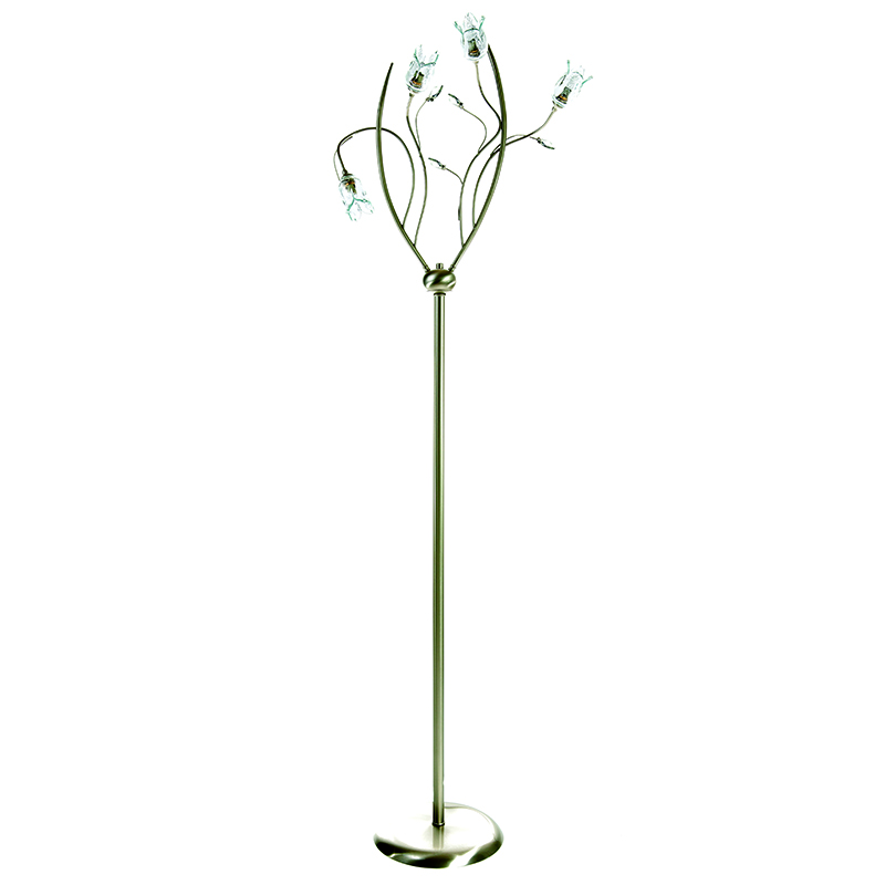 Επιδαπέδιο φωτιστικό με κομψή μεταλλική βάση σε νίκελ φινίρισμα και λευκά γυάλινα αμπαζούρ. Διαθέτει τέσσερις υποδοχές για λαμπτήρες τύπου G9, προσφέροντας ομοιόμορφο και ευχάριστο φωτισμό. Ιδανική επιλογή για σαλόνι, υπνοδωμάτιο ή οποιονδήποτε οικιακό και επαγγελματικό χώρο.