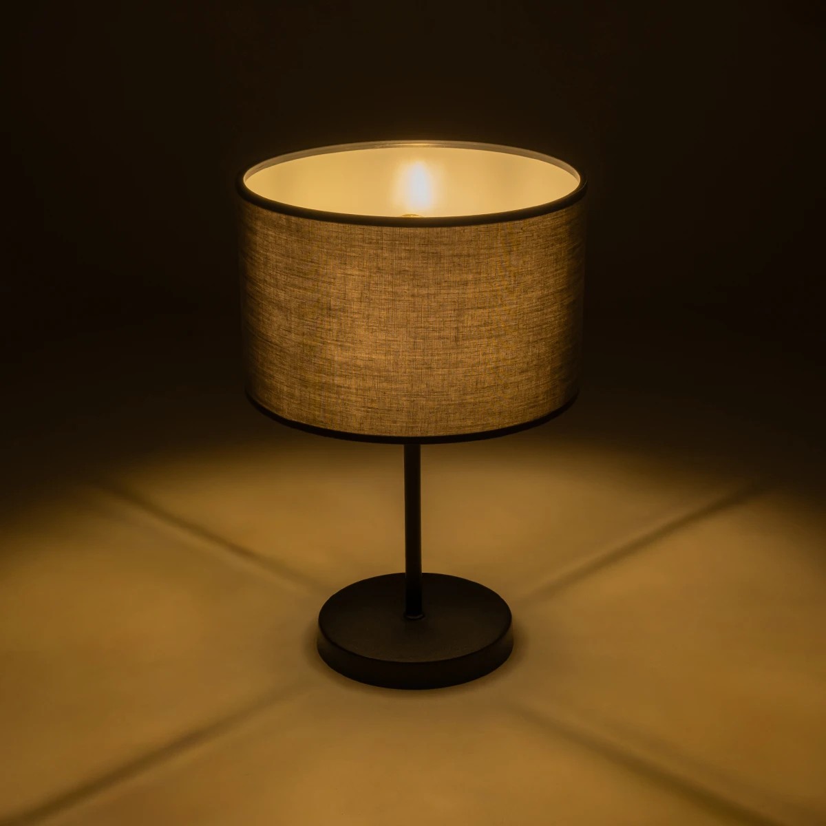 Επιτραπέζιο φωτιστικό πορτατίφ LARA με μαύρο υφασμάτινο καπέλο και μαύρη μεταλλική βάση. Διαθέτει υποδοχή για λαμπτήρα Ε27. Ιδανικό για τοποθέτηση σε υπνοδωμάτιο , γραφείο και σαλόνι.