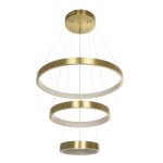 Κρεμαστό φωτιστικό εσωτερικού χώρου NEMESIS TRIO DECO σε χρώμα χρυσό, με ενσωματωμένο Led 100 Watt και δυνατότητα εναλλαγή φωτισμού μέσω τηλεχειριστηρίου All In One σε Ψυχρό 6000k, σε Φυσικό 4500k και σε Θερμό 2700k . Κατάλληλο να τοποθετηθεί σε υπνοδωμάτιο , σαλόνι , κουζίνα, τραπεζαρία και σε οποιοδήποτε άλλο οικιακό και επαγγελματικό χώρο.
