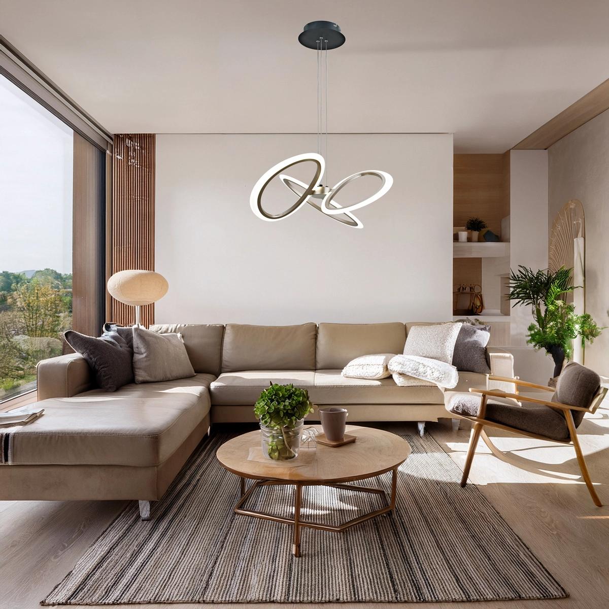 Τεχνικά χαρακτηριστικά -χρώμα φωτός: 4000K (ψυχρό λευκό) -φωτεινότητα: 4800lm -κατανάλωση ισχύος: 40W -τάση: 220-240V -ενεργειακή κλάση: E -διάμετρος: 53cm -ύψος: φωτιστικού: 20cm, καλωδίου: 120cm (ρυθμιζόμενο) -υλικό: αλουμίνιο -χρώμα: οπάλ χρυσό (opal gold) & μαύρο (sanded black) Περιεχόμενα συσκευασίας -LED φωτιστικό -βίδες & ούπα -εγχειρίδιο χρήσης