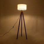 SAGA Eπιδαπέδιο Φωτιστικό Μονόφωτο E27 Καφέ Ξύλο με Λευκό Ύφασμα Μ38 x Π38 x Υ140cm