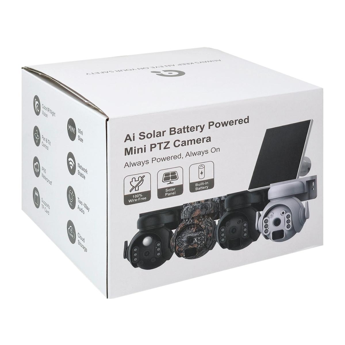 Τεχνικά χαρακτηριστικά -Image sensor: 1/3" 3MP CMOS Sensor -Lens: 3.6mm /F2.2 -Camera angle: 85° -Video compression: H.264 -Pixel: 2304x1296P?3MP -Connection: WiFi IEEE802.11 b/g/n, 2.4GHz -Detection mode: PIR Human induction detection -Detection distance: 0~12M -Detection angle: 120° -Auto detection: support -PTZ angle: Horizontal 355° Vertical 90° (rotatable) -Illumination: Low Illumination 0.001LUX -Infrared light: 2pcs of IR lights -White light: 4pcs of White LED -Speaker: Built in (1x 5W) -Microphone: Built in -Local storage: Micro SD card (max 128G) -Power supply mode: Solar +18650 battery -battery capacity: Built in 7800mAh (3pcs of 18650 batteries) -Maximum working power: 5W -Working environment: Indoor/outdoor -Operating temperature: -30°~+60° -Working humidity: 0%~90% -Human detection: Support -Two ways audio: Support -Alarm sound: Support, built in siren -Record & playback: Support -Dimensions: Camera: 136 x 140 x 142mm, Panel: 168 x 183mm Περιεχόμενα συσκευασίας -Κάμερα -Βάση ηλιακού πάνελ -Καλώδιο USB σε USB-C -Βίδες & ούπα -Εγχειρίδιο χρήσης Συμβατή εφαρμογή: UBox APP για Android συσκευή: https://play.google.com/store/apps/details?id=cn.ubia.ubox APP για iOS συσκευή: https://apps.apple.com/us/app/ubox/id1436112326