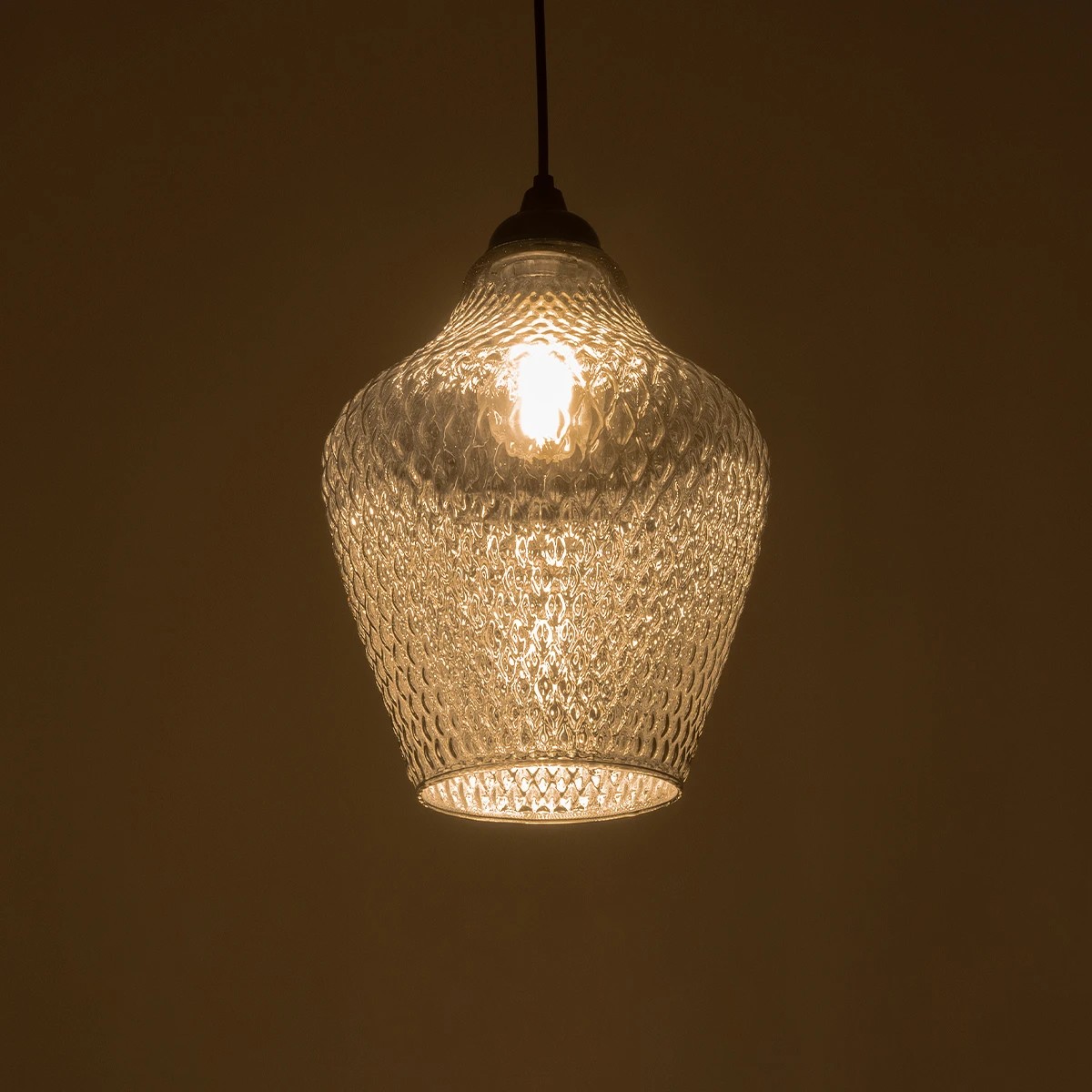 Κρεμαστό φωτιστικό οροφής σε απόχρωση φιμέ. Διαθέτει υποδοχή για λαμπτήρα τύπου Ε27. Κατάλληλο να τοποθετηθεί σε κουζίνα, σαλόνι, τραπεζαρία και σε οποιοδήποτε άλλο οικιακό και επαγγελματικό χώρο.
