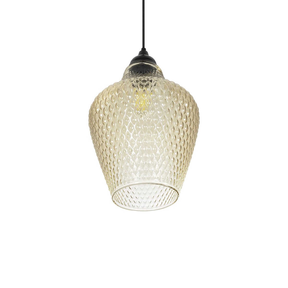 Κρεμαστό φωτιστικό οροφής σε απόχρωση μελί. Διαθέτει υποδοχή για λαμπτήρα τύπου Ε27. Κατάλληλο να τοποθετηθεί σε κουζίνα, σαλόνι, τραπεζαρία και σε οποιοδήποτε άλλο οικιακό και επαγγελματικό χώρο.